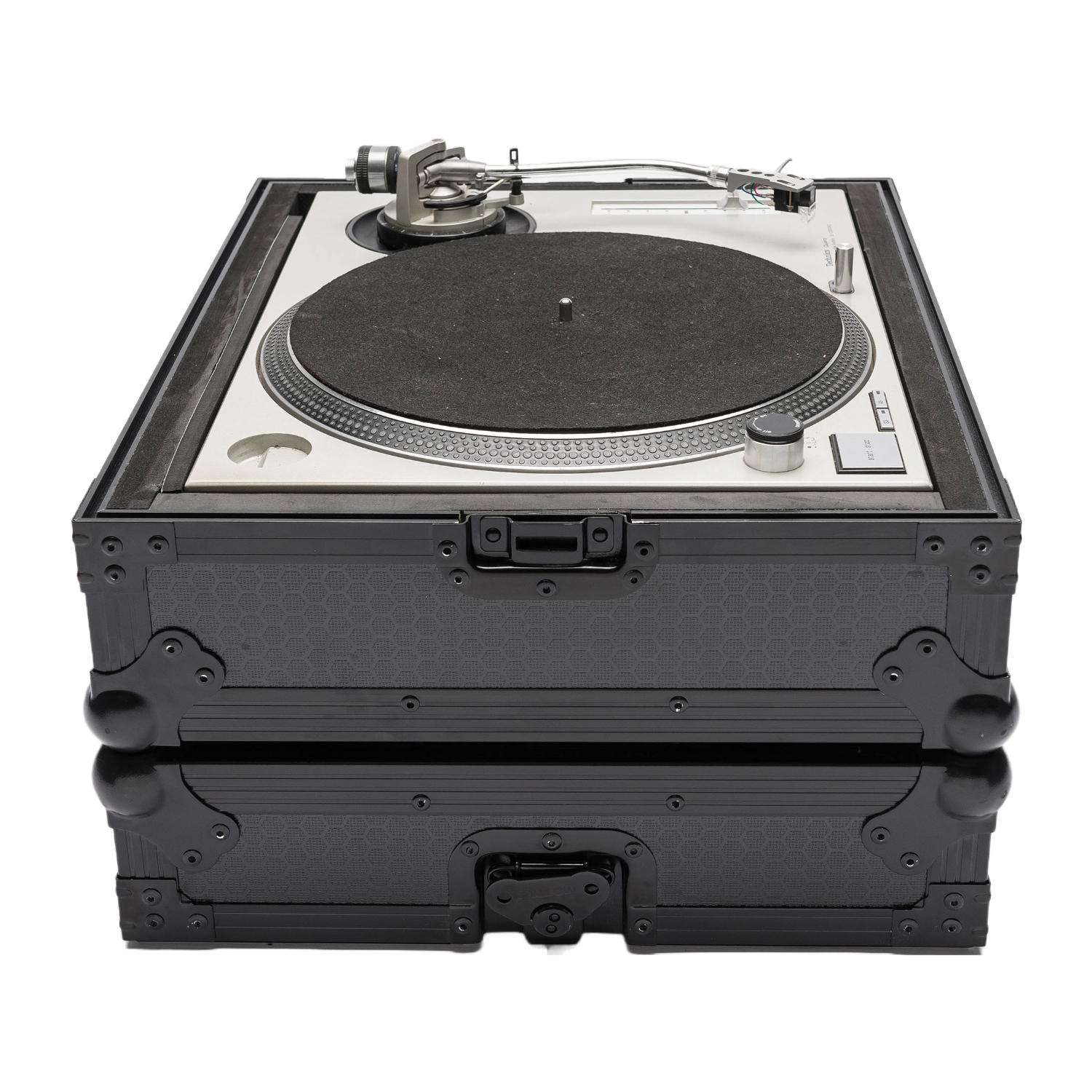 Magma Multi Format Turntable Case II, επαγγελματικού τύπου, σκληρή θήκη μεταφοράς σχεδιασμένη ειδικά για να μεταφέρει με ασφάλεια τα δημοφιλή πικάπ της Technics SL 1200/1210 ή τo Rane 12 MKII Controller Είναι κατασκευασμένη από πλαστικοποιημένο κόντρα πλακέ με πάχος 9mm. Η γωνίες είναι επενδυμένες με χάλυβα σε μορφή σφαίρας ενώ η θήκη ασφαλίζει με αλουμινένιες κλειδαριές τύπου “πεταλούδας”. Το εσωτερικό είναι πλήρως επενδυμένο για αυξημένη προστασία του εξοπλισμού ενώ υπάρχουν εξτρα “μαξιλαράκια” για την προσαρμογή άλλων μοντέλων πικαπ.Χωράει τα παρακάτω μοντέλα. Technics 1200/1210 G, Technics 1200/1210 GR, Technics 1200/1210 MK2, Technicsc 1210 MK5, Technicsc 1210 MK7, Rane Twelve, Rane Twelve MK2, Audio Technica LP120-USB, Audio Technica LP1240-USB, American Audio Power Drive 2.2, DJ-Tech SL-1300MK6, Mixars STA, Numark TTX, Numark CDX, Pioneer PLX-1000, Pioneer PLX-500, Reloop RP-8000, Reloop RP-7000, Reloop RP-6000, Reloop RP-2000, Roland TT-99, Stanton ST-150, Vestax PDX 3000Eξωτερικές διαστάσεις: 52 x 43 x 22 cmΕσωτερικές διαστάσεις: 45,5 x 36,9 x 9 cmΒάρος: 8 κιλάΧρώμα: Μαύρο / Ασημί