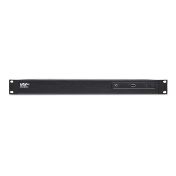 Χαρακτηριστικά: Είσοδοι: 16Mic/Line: 8 (Euroblock)RCA: 8 (mono-summed RCA pairs) Έξοδοι: 10 Line: 8 (Euroblock, balanced)Music on Hold: 1 (Euroblock, transformer balanced)Cue (phones): 1 (3.5 mm, stereo) Input Processing: EQ 4-band parametric EQ with high/low shelving option, variable 24/octave HPF and LPF, Dynamics Gate, choice of Auto Gain Control (AGC) or Compressor Output Processing: EQ 1/3 octave GEQ, Anti-feedback Filters 12-band variable notch filters, Dynamics Comp/limiter, ducker, loudness. Delay 100 msec Loudspeaker tunings: Factory: Intrinsic Correction™ voicing for QSC loudspeakers, User: 6-band parametric EQ, HPF & LPF (Linkwitz-Riley or Butterworth; 12, 18 or 24 dB/octave) Effects & RTA: Effects 1 multi-effects processor, RTA 1/3 octave RTA Άλλες συνδέσεις: Ethernet 1 x RJ45 for connection to Wi-Fi router (user supplied), MP-MFC ports 2 x RJ45, GPI 2 Inputs (Euroblock) Τηλεχειρισμός: MP-MFC Optional wall controller, MP Install app For configuration/design functions (for iOS/Android tablets, Windows and Mac OS PCs), MP Manage app For end user control functions (for iOS/Android tablets and smartphones) Phantom Power: All microphone inputs (+12 volts) Power Requirements: TBD W, 100-240 VAC, 50-60 Hz, universal supply, IEC inlet Indicators: Blue POWER LED, blue STATUS LED Διαστάσεις: 4.5 cm X 48.3 cm X 35.6 cm Βάρος: 3.2 kg