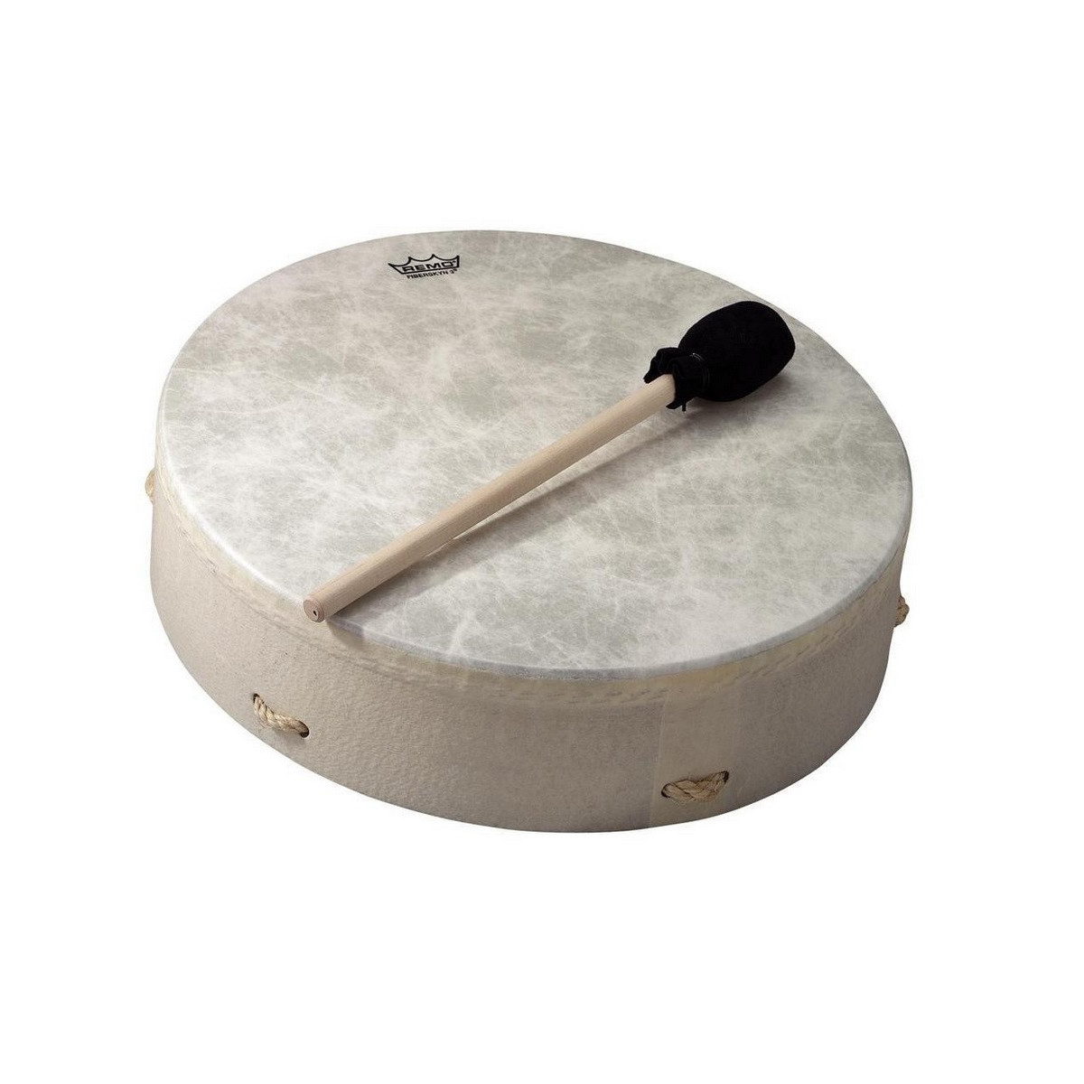 Remo RE-E1-032200, Buffalo Drum 22″x3.5″ with beaterBuffalo Frame DrumsWith respect and reverence for the age-old traditions of drums and drumming, Remo offers the Buffalo Frame Drum Collection.Each drum features high-quality REMO pre-tuned drum heads and Acousticon Shells – stronger, lighter and acoustically superior to traditional wood-ply construction.After searching for years, they have found these drums to have the most remarkable sound consistency of any frame drum. The deep, rich sound holds true even in humid or wet weather!