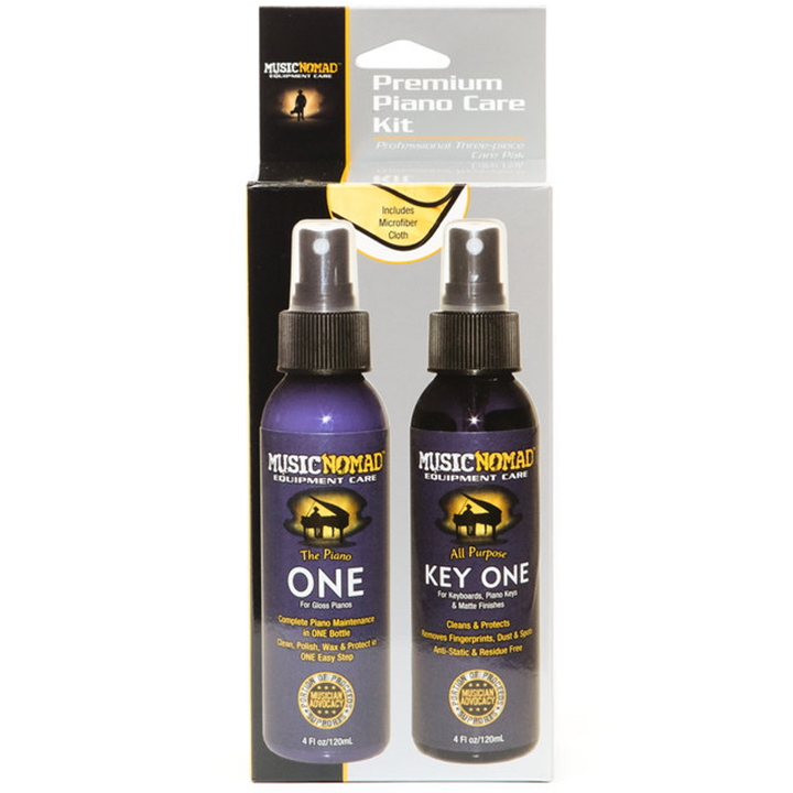 Το κιτ φροντίδας πιάνου Premium της MusicNomad περιλαμβάνει όλα όσα χρειάζεστε για τη φροντίδα του πιάνου σας. Το Piano ONE της MusicNomad είναι οργανικά σχεδιασμένο για να καθαρίζει, να γυαλίζει, να κερώνει και να προστατεύει τα γυαλιστερά πιάνα. Αυτή η φόρμουλα είναι εμποτισμένη με λευκό βραζιλιάνικο κερί καρναούμπα για να προσφέρει μια διαφανή, προστατευτική ασπίδα στο φινίρισμα του πιάνου σας. Ασφαλές για όλα τα ημι- και γυαλιστερά φινιρίσματα, προσθέσαμε ακόμη και προστατευτικά UV και αντιστατικούς παράγοντες. Το καθαριστικό Key ONE All Purpose της MusicNomad είναι ό,τι χρειάζεστε για να συντηρήσετε τα πλήκτρα του πιάνου σας σε ένα εύκολο βήμα – απλά ψεκάστε και σκουπίστε. Αυτή η φόρμουλα είναι ασφαλής για όλα τα πλήκτρα του πιάνου και ένα μόνο ψέκασμα καθαρίζει τα δακτυλικά αποτυπώματα, τη σκόνη και τις μουτζούρες όπως κανένα άλλο προϊόν. Χωρίς ραβδώσεις και υπολείμματα, αφήνει μια όμορφη, καθαρή επιφάνεια με αντιστατικούς παράγοντες που συμβάλλουν στη μείωση της προσέλκυσης και της δέσμευσης της σκόνης. Το πανί ξεσκονίσματος και γυαλίσματος της MusicNomad παρατείνει την αίσθηση φρεσκάδας από την έκθεση για το πιάνο σας. Αυτό το πανί μικροϊνών 12″ x 12″ διαθέτει ένα επαναστατικό υλικό που περιέχει 90.000 μικροΐνες καθαρισμού ανά τετραγωνική ίντσα. Η βελούδινη πλευρά με το υψηλότερο πέλος έχει σχεδιαστεί για να σηκώνει και να παγιδεύει τη σκόνη μακριά από την επιφάνεια. Αφού απομακρύνετε τη σκόνη, γυρίστε το πανί στην πλευρά με το πανί με το χαμηλότερο πέλος και χρησιμοποιήστε το με τα επαναστατικά καθαριστικά και γυαλιστικά της MusicNomad για να καθαρίσετε και να αποκαταστήσετε το αρχικό φινίρισμα της επιφάνειας. Αυτή είναι η ποιότητα της MusicNomad – που ανεβάζει τον πήχη στη φροντίδα του εξοπλισμού.