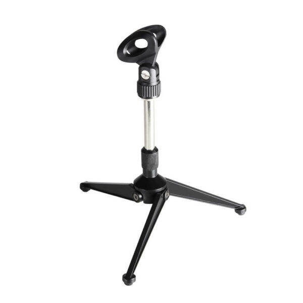 Επιτραπέζια, αναδιπλούμενη βάση μικροφώνου της γερμανικής εταιρίας Adam Hall με μανταλάκι μικροφώνου σε μαύρο χρώμα. ]