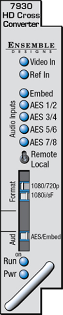The 7930 module provides cross conversion between HD 1.5 Gb/s formats, processing all popular variations of 1080 and 720, making it simple for every facility to ingest any type of HD signal.