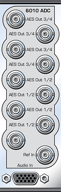 The 6010 module converts four channels of analog audio to two AES digital audio streams. Analog to digital conversion is performed with 24 bit precision for outstanding sonic performance. Use the 6010 to convert the audio outputs of your existing analog VTRs or any other high quality analog audio source. Like all modules in the Avenue series, the 6010 may be controlled either locally or remotely. Alternately, consider using the 5330/6330 and 8500 series.