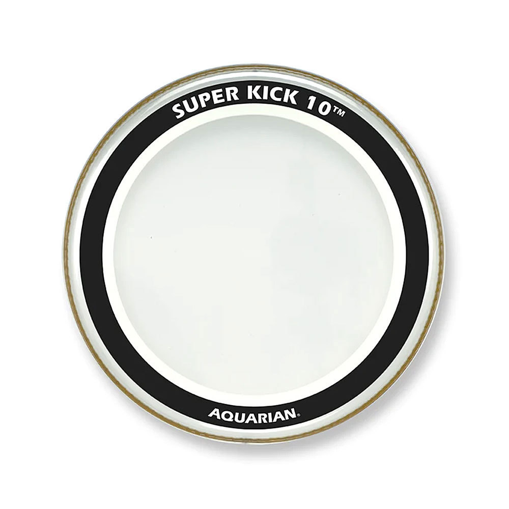 The Aquarian 20″ Super Kick 10 Bass Drum head is a clear, 2x10mil double- ply drumhead that features Aquarian’s patented “Floating Muffling System”. The SK10 is one of the heaviest bass drumheads that we make and works well on large bass drums when you need an easy remedy for controlling ?big? annoying overtones. Two-10mil, Vacuum Molded Plies