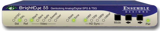 BrightEye 55 is a genlockable sync generator and test signal generator that can be used as either a slave or master reference generator. It can lock to house reference or it can lock to its own internal precision standard. BrightEye 55 is well suited for remote trucks, desktop and fly packs.
