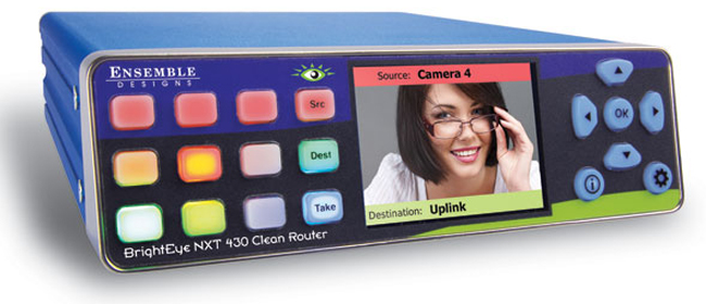The BrightEye NXT430-X Compact Router with U/D/C and Clean and Quiet Switching allows format conversion to take place while routing signals to destinations. Now, various formats of high definition and standard definition content can be converted to a common format and routed seamlessly to destinations. Standard definition sources can be up converted to high definition as part of the routing process, as well as cross converting from one HD format to another. All you have to do is select a SMPTE standard to output to a particular destination, and all sources routed to that destination will be converted to the format.
