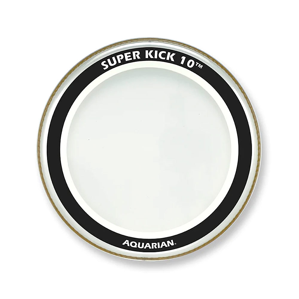 The Aquarian 22″ Super Kick 10 Bass Drum head is a clear, 2x10mil double- ply drumhead that features Aquarian’s patented “Floating Muffling System”. The SK10 is one of the heaviest bass drumheads that we make and works well on large bass drums when you need an easy remedy for controlling ?big? annoying overtones. Two-10mil, Vacuum Molded Plies – Added durability and low-end punch