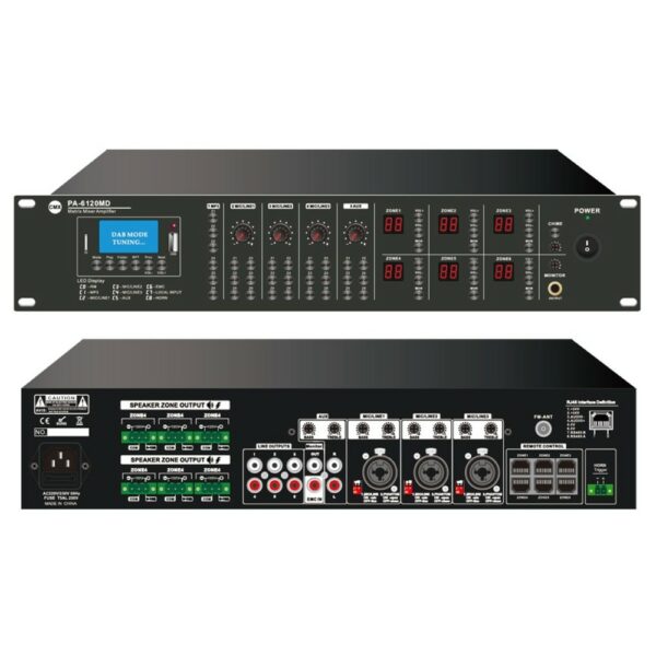Ενισχυτής-μίκτης 6 ζωνών Matrix + USB / SD / FM / BLUETOOTH, 6 x 120W, ταυτόχρονη μετάδοση 6 πηγών μουσικής, 100V / 8 Ohm, με είσοδο EMC.