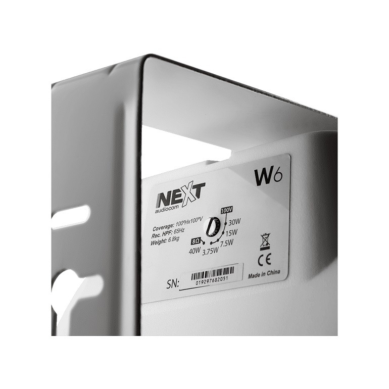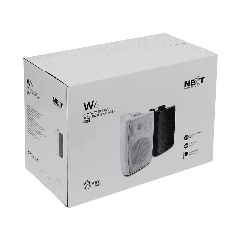 The W6 two-way loudspeakers with built-in 100V transformer and 8Ω power tap are perfect for both distributed and near-field applications in environments such as retail stores, restaurants, bars, churches and gyms. The low frequencies are reproduced by a 6.5” direct-radiating woofer with a polypropylene cone, while the high-frequency section is based on a titanium tweeter. The speaker’s design with a waveguide improves dynamics and efficiency bringing out details in everything you listen to, while reducing reflections that can color the sound. A U-bracket is included and will support your installation on the wall or ceiling.