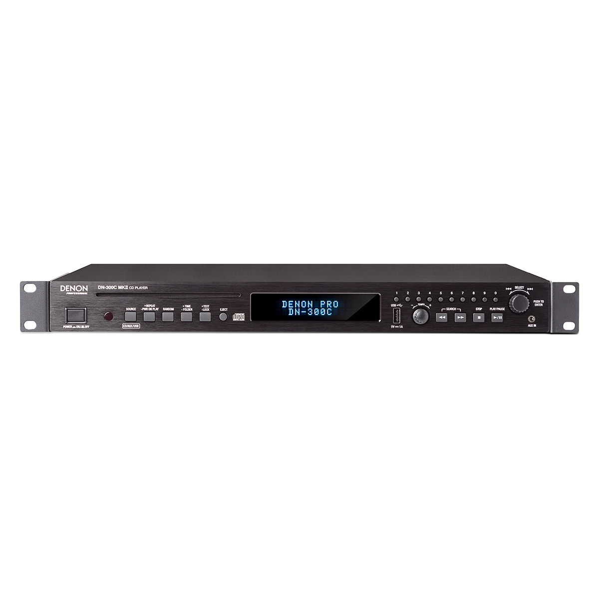 Denon Professional DN-300C MKII CD/USB playerΧαρακτηριστικά:Αναπαράγει CD, USB και πηγές 3.5mmΕίσοδος ήχου 3,5mm AUX στο μπροστινό πάνελ10 πλήκτρα άμεσης πρόσβασης στα Track κάθε CDΠεριλαμβάνει ασύρματο χειριστήριοΈξοδος XLR και RCA1U Rack MountableΤύποι Αναπαραγωγής: CD: CD-DA (CD-TEXT), CD-ROM (ISO9660), CD-R, MP3-CD, USB: FAT16 / FAT32Υποσηριζόμενα USB: Μέχρι 32GB, μέγιστο μέγεθος αρχείου 2GBΥποστηριζόμενα αρχεία MP3: 32 to 320 kbps and VBR, Sampling Frequency: 44.1 kHzΣυχνοτική απόκριση: 20 Hz – 20 kHz (± 1.0dB)S/N ratio: More than 95 dB (A-Weighted)THD: Less than 0.01%Dynamic Range: More than 85 dBChannel Separation: More than 80 dBΈξοδοι: Balanced XLR, unbalanced RCAΔιαστάσεις: 483 x 347 x 44 mm (με rack ears), 434 x 347 x 44 mm (χωρίς rack ears)Βάρος: 3.6 kg