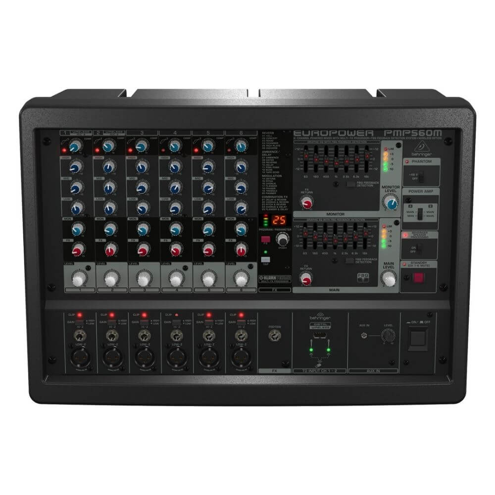 Αυτοενισχυόμενη κονσόλα 6 καναλιών με compressor ισχύος 2 Χ 250 Watts/4Ω. 1 mon out. Ενσωματωμένη μονάδα εφφέ 25 προγραμμάτων. Phantom power. Equalizer 3 περιοχών σε κάθε κανάλι & master equalizer 2 Χ 7 περιοχών στην έξοδο . Εφοδιάζεται με ενσωματωμένο ασύρματο δέκτη 2 μικροφώνων τα οποία ενεργοποιούνται με usb transimter 2.4 GHz.