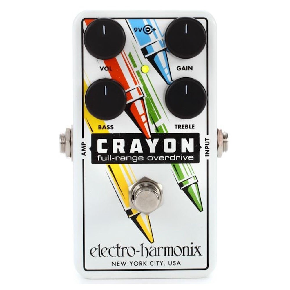 to crayon 76 της electro harmonix είναι ένα φθηνό αλλά ιδαίτερα αποδοτικό πετάλι distortion.αυτό που κάνει το crayon να ξεχωρίζει είναι πως το distortion μπορεί να καλύψει όλο το συχνοτικό φάσμα (full range). αντίθετα με τα κοινά distortion πετάλια που εκτείνονται μόνο/κυρίως στη μεσαία περιοχή. Έτσι.μπορείτε να φτίαξετε μεγάλη γκάμα ήχων.απο γλυκιά παραμόρφωση εώς full distorted βαρύ ήχο και σε αυτό βοηθάνε τα ρυθμιστικά έντασης. gain. βass και treble που διαθέτει.