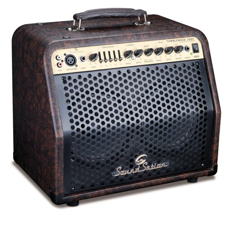 Ο TUMBLEWEED-30RC είναι ενισχυτής με συνδυασμό διπλών καναλιών για ακουστική κιθάρα που περιλαμβάνει προεγκατεστημένα εφέ. Αποτελεί την τέλεια επιλογή για μελέτη στο σπίτι, πρόβα και ζωντανές παραστάσεις. Η XLR είσοδος μικροφώνου, η διπλή γραμμή εξόδου, ο επεξεργαστής DSP και το FX loop διευρύνουν το εύρος χρήσης και την ευελιξία του ενισχυτή. Ισχύς εξόδου: 30Watt, κανάλια: 2, ρυθμίσεις: ευαισθησίας, 5 band Eq., chorus (ταχύτητα/βάθος), φίλτρου απόρριψης σήματος (Notch), ολική ένταση (master). Woofer: 2×6.5’’. Είσοδοι: Όργανο, Aux in, Μικρόφωνο XLR in, πεταλιέρα (footswitch).