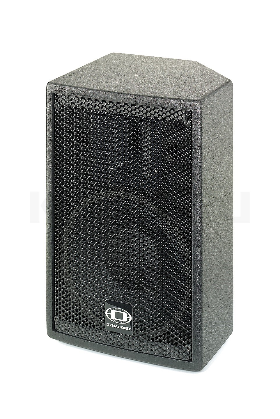 The LM10-2 is a 2-way loudspeaker system with high power handling capacity that has been designed to be used as stand-alone full range system, together with a passive sub woofer (e. g. LM12-1) or as Mid/Hi component in active multi-way setups. (recommended active crossover frequency: 100 – 150 Hz). Through its half-sided trapezoidal shaped enclosure the LM10-2 is also suitable as monitor speaker system, especially for keyboard applications. The Lo-Mid range between 80 Hz and 7 kHz is reproduced by a Dynacord 10″ woofer 357793. Hi range frequencies above 7 kHz are transmitted via an Electro-Voice DH2010A/HPT94 Constant Directivity Horn system. Thermal breakers and halogen protectors prevent that the loudspeaker components are damaged by critical output levels and short-term thermal overload. The cabinet of the LM10-2 is made of 16 mm Mediapan. All connections of enclosure parts as well as the internal bracing are slotted and glued together. The cabinet’s surface is coated with hard-wearing matt black structure lacquer. Front-protection for the loudspeaker systems is gained through an extremely stable, powder-coated metal grille. The terminal board of the LM10-2 provides two Speakon female-type connectors which ensure a secure connection and trouble-free carrying the signal through. A recessed handle on the side guarantees easy and safe transportation. Four heavily dimensioned rubber foot stands, the pole-mount sleevejoint that is recessed in the bottom side as well as the cabinet’s half-sided trapezoidal shape allow a wide variety of different combinations in the loudspeaker setup.