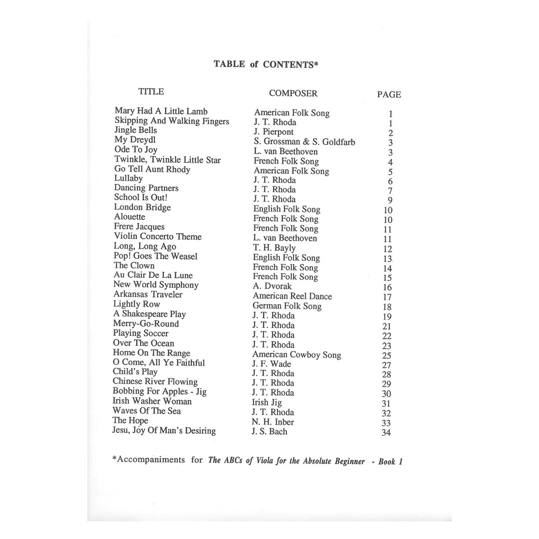 Rhoda – The ABCs Of Viola Easy Piano Accompaniment for Book 1