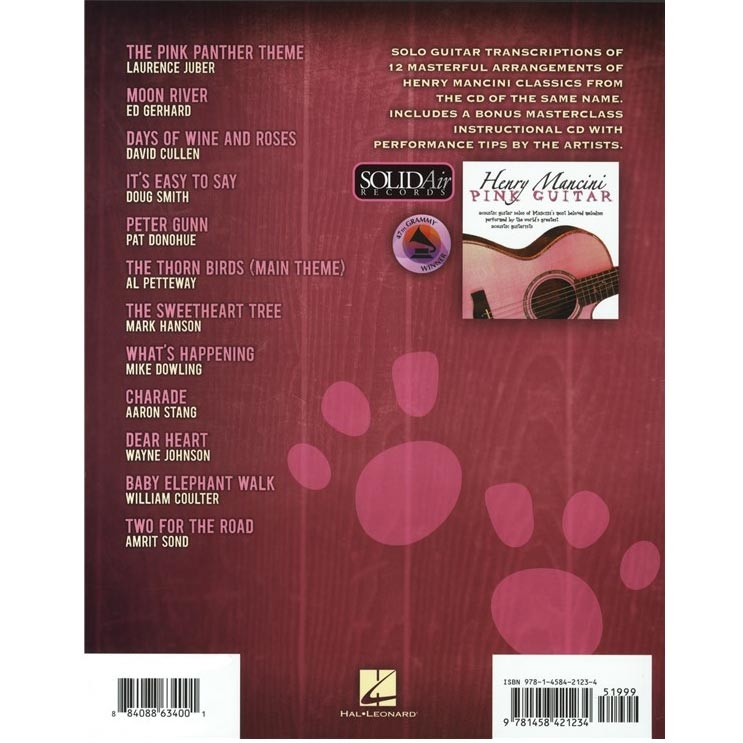 Αυτός ο τόμος είναι εμπλουτισμένος με σόλο μεταγραφές κιθάρας από το βραβευμένο με το Grammy CD το οποίο παρουσιάζει μια ντουζίνα από τους μεγαλύτερους ακουστικούς κιθαρίστες στον κόσμο που αποδίδουν αγαπημένες μελωδίες του θρυλικού συνθέτη Henry Mancini.Περιλαμβάνει ένα bonus masterclass CD με συμβουλές από τους καλλιτέχνες.