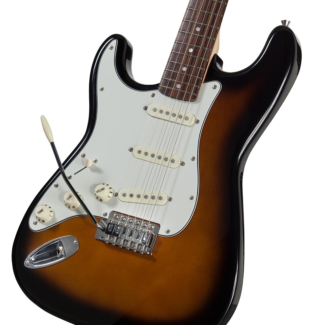 ROCKER series is a super classic revisited: double cutaway electric guitar featuring basswood body for rich tone and reliability, 3 single coils for clear and brilliant tone. The 5-way switch and volume/tone pots offer great sound flexibility for blues, rock, funky tones. A perfect choice for beginners demanding quality.