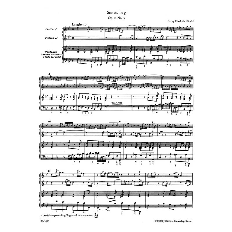 Barenreiter Handel – Trio Sonata In G Minor, For 2 Violins & Basso Continuo Βιβλίο για βιολί