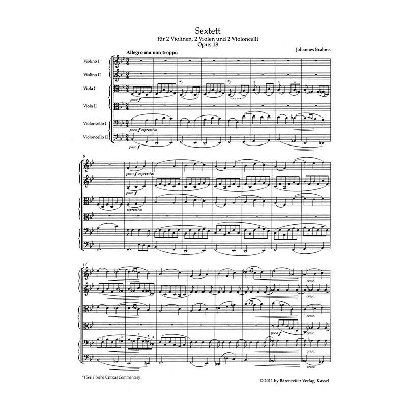 The two string sextets (op. 18 and op. 36 [BA 9420, TP 420]) by Johannes Brahms are amongst the high points of the Romantic string repertoire and some of the most popular chamber music works of all.