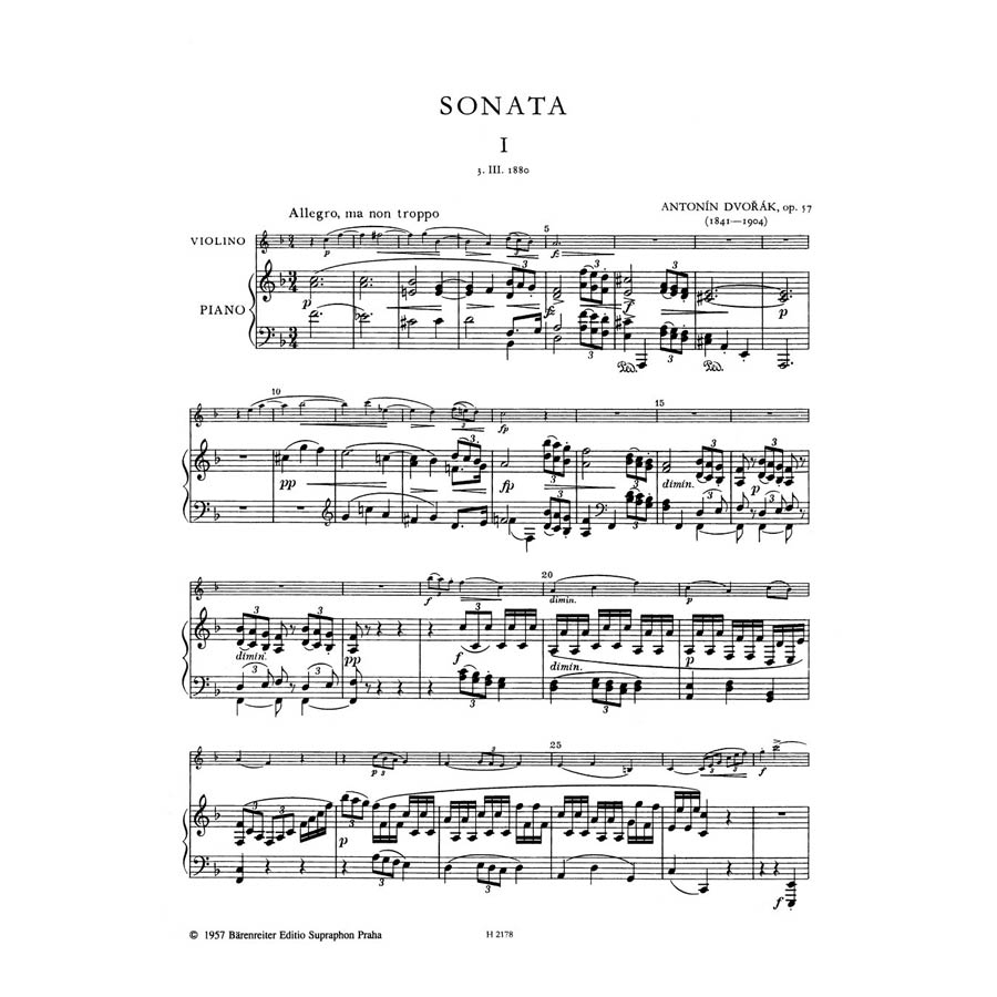 Barenreiter Dvorak – Sonata In F Major Op.57 Βιβλίο για Πιάνο και Βιολί